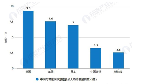 2018年中國(guó)與發(fā)達(dá)國(guó)家烘焙食品人均消費(fèi)量對(duì)比情況